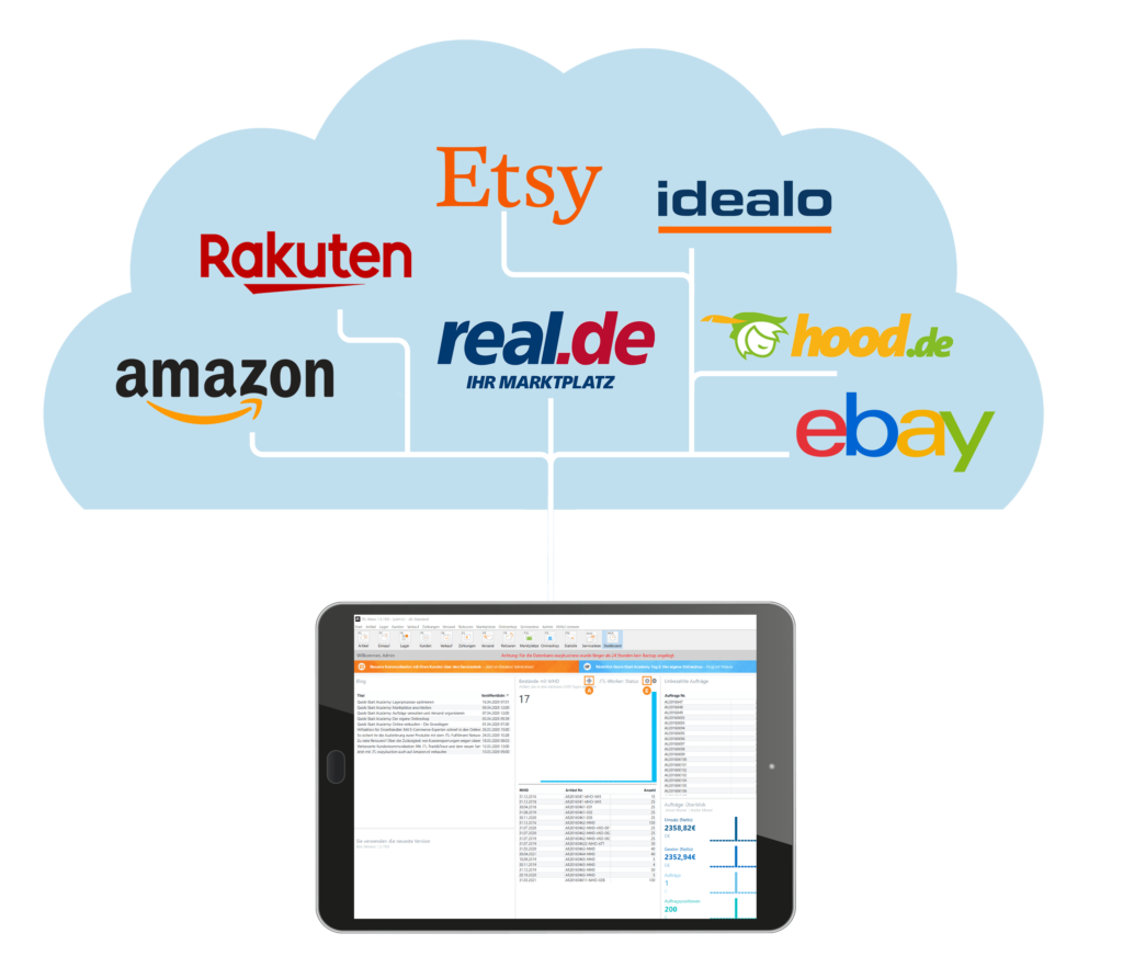 Verbinden Sie Onlineshop, diverse Marktplätze, Artikeldaten, Einkauf, Lagerwirtschaft, Buchhaltung, Mahnwesen und Retourenmanagement mit nur einem System. Alle Daten liegen zentral und stets synchronisiert in der JTL-Wawi.